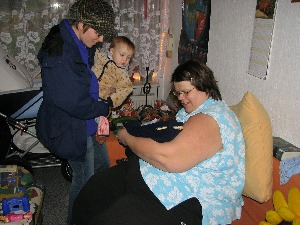 Onkel Richard mit der Windeltorte - Leon auf seiner Lok vor unserem Arzt.