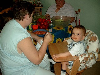 Tante Sandra füttert mich, Omi macht Salat, Onkel Pierre bastelt an meinem Lumpi.