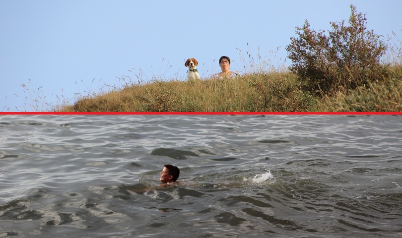 Felix schwimmt im Limfjord - Newmi und Mama schauen von oben zu :)