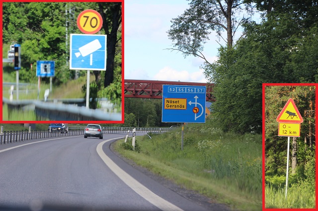 Auf der Strecke heute konnten wir diverse Verkehrszeichen sichten. Auch ein Hinweis auf 12km lange Elche ;o)