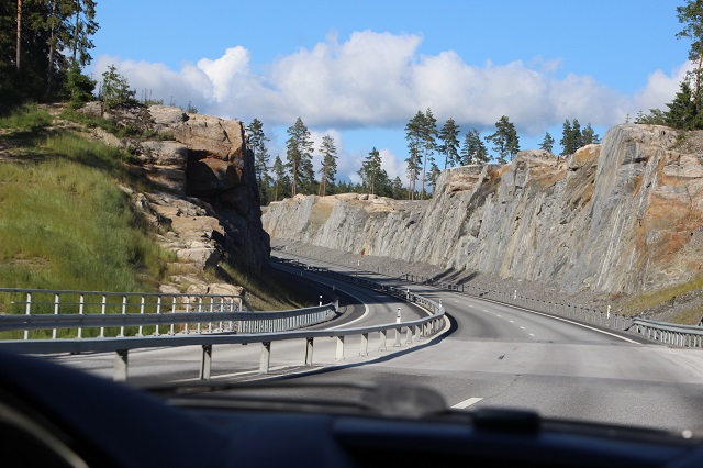 Frisch weggesprengter Felsen und neue Straße dazwischen.