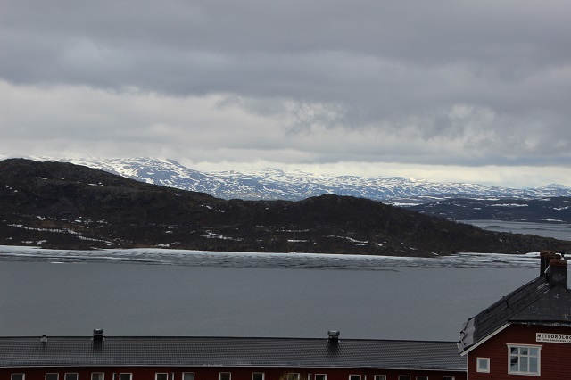 Am Bahnhof Riksgränsen haben wir noch Eis auf dem See.