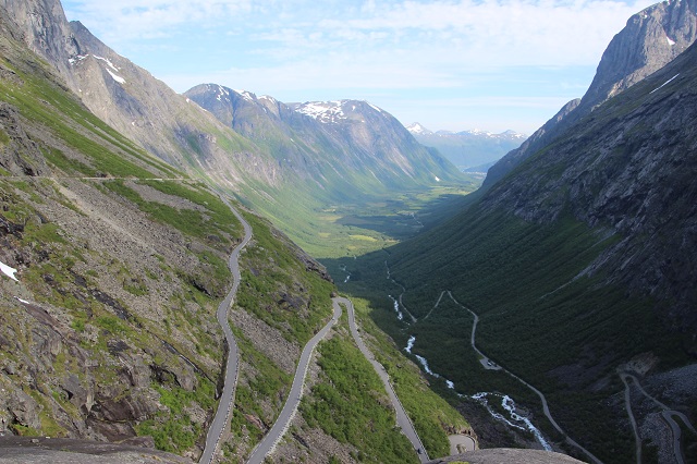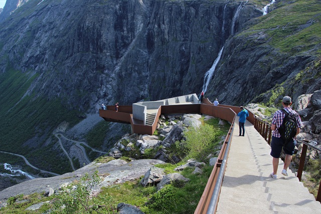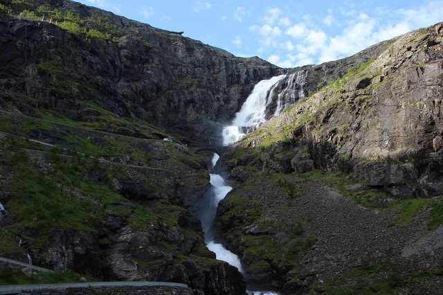 Zuerst haben wir die Trollstiegen erklommen. Hier war sehr viel Wasser in den Wasserfällen.