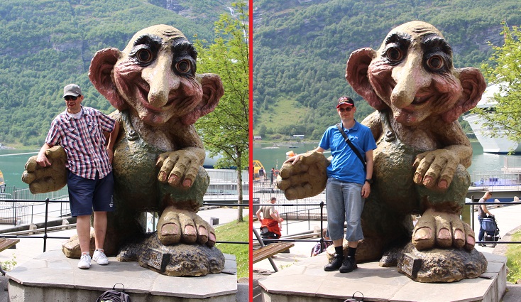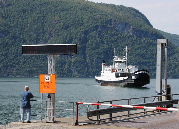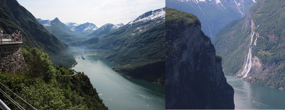 Links der Kreuzfahrer im Geirangerfjord - Rechts die 7-Schwestern.