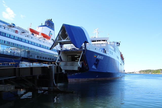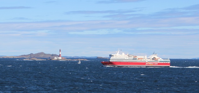 In Sandefjord fuhr die 8Uhr-Fähre (Bohus) gerade raus und unsere (Viking) hat umgesetzt.