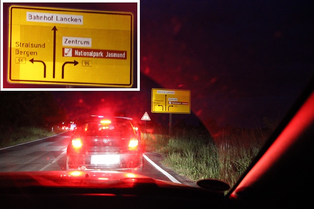 Auf Rügen erstmal Stau - Bergen auf Rügen - nicht Norwegen.