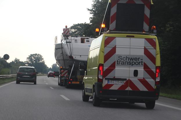Noch in Deutschland mussten wir auf der Straße ein Boot überholen