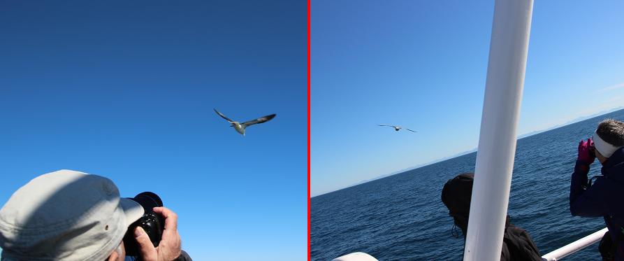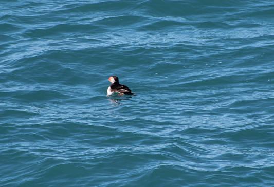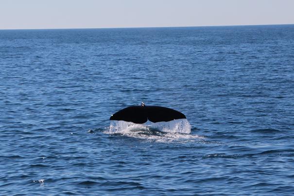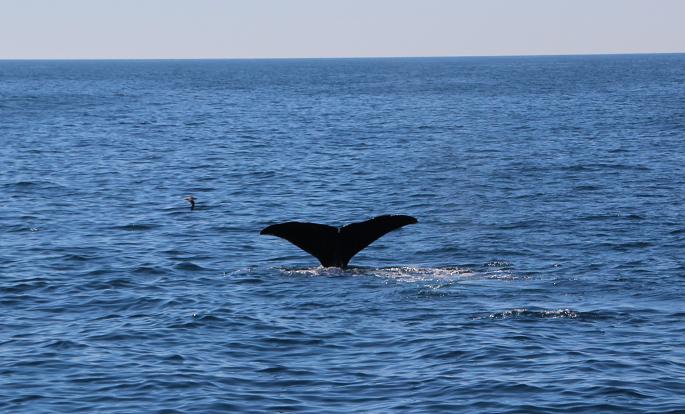 Viele Vögel (u.a. Papageientaucher) haben wir gesehen. Später konnten wir zwei Pottwale mit den typischen Schwanzflosse sehen.