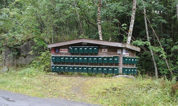 Kurz vor Stavern an der Hauptstraße - typische Briefkastenansammlung.
