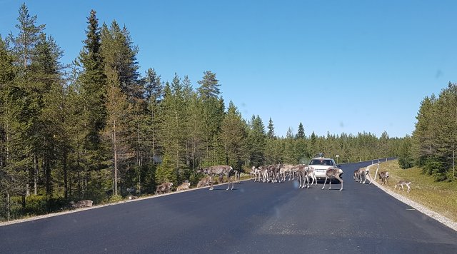 Nach einem 2. Frühstück wurden wir durch Schilder auf das nördliche Finnland mit Rentieren hingewiesen.