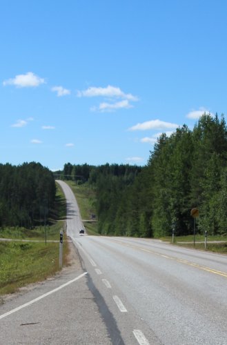 Eine der vielen langen und wenig befahrenen Straßen in Finnland.