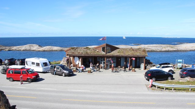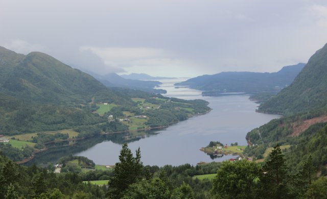 Nach einem ausgiebigen Frühstück im Hotel sind wir den langen Weg auf der 714, auch durch den Unterseetunnel, bis zur Abzweigung ca. 8km vor der E39 zurück gefahren. Da wir die E39 meiden wollten fuhren wir die kleine Straße bis Kryksaeteröra und dort auf die 680 nach Westen bzw. Norden. Diese haben wir bis zur Fähre in Tömmervag verfolgt. Die Fähre kam so schnell, dass wir kaum Zeit hatten unser Eis zu essen ;o)
