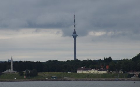Der Fernsehturm von Tallinn von der Fähre aus gesehen.