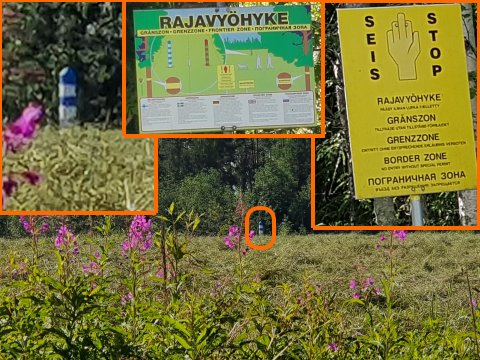 Schilder an der finnisch/russischen Grenze.