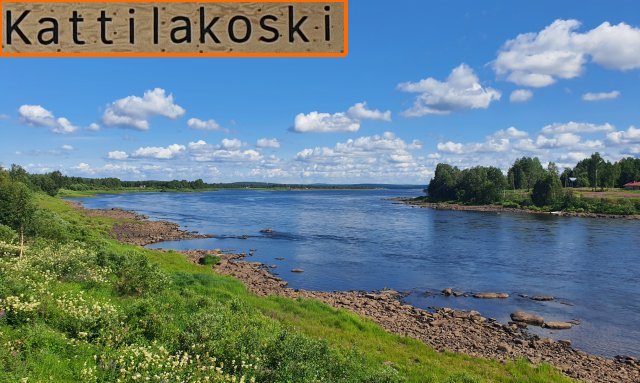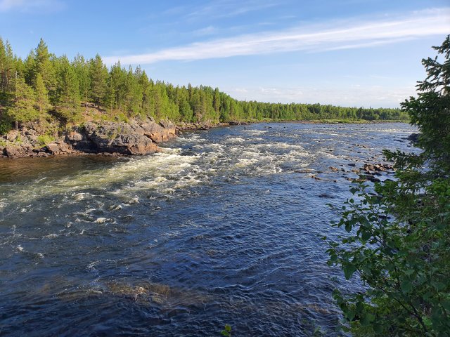 Noch in Muonio der Grenzfluß mit einer Stromschnelle.