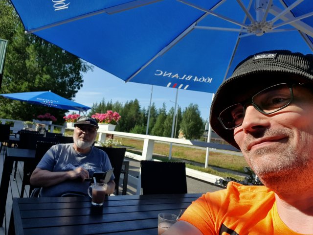 Auf schwedischer Seite des Grenzflußes in Kattilakoski nochmal etwas gegessen und getrunken.