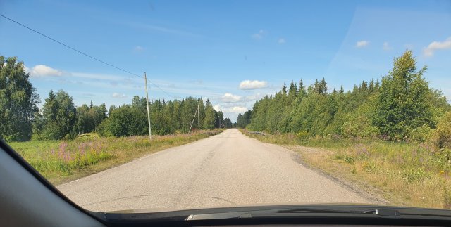 Die Straße 398 in Schweden, kaum Wolken bei angenehmen 23°C.