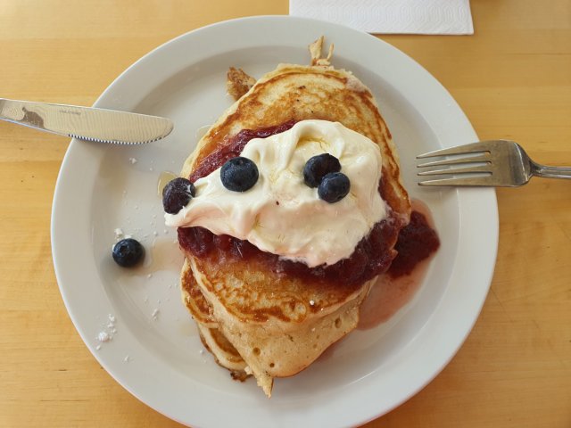 Das Frühstücksbuffet im Hotel war sehr üppig und lecker.