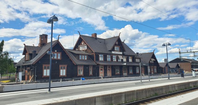 Der Bahnhof von der Gleisseite aus fotografiert.