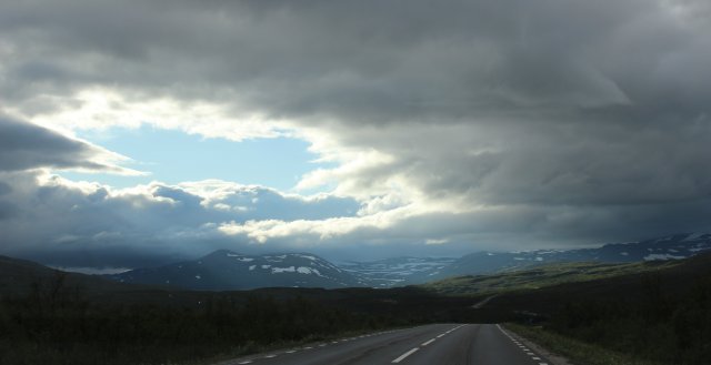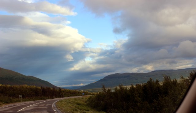 Immer wieder Wolkenlücken für die Sonne, als wir am Abend Richtung Grenze fuhren.