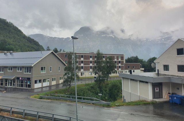 "Unsere Bank" auf über 700m heute früh nur 12°C - die Berge mit Schnee oben sind schon in Norwegen.