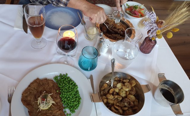 In Dänemark sind wir dann zuerst die E39 und ab Aalborg die E45 immer Richtung Süden gefahren. Nun sind wir in einem wunderschönen alten Hotel. Da wir weder ein zweites Frückstück noch Mittag gegessen hatten, mussten wir das hier erstmal nachholen :o)