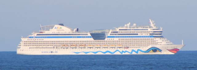 Die AIDAsol mit dem Tele erwischt, bei der Anfahrt auf Kristiansand.